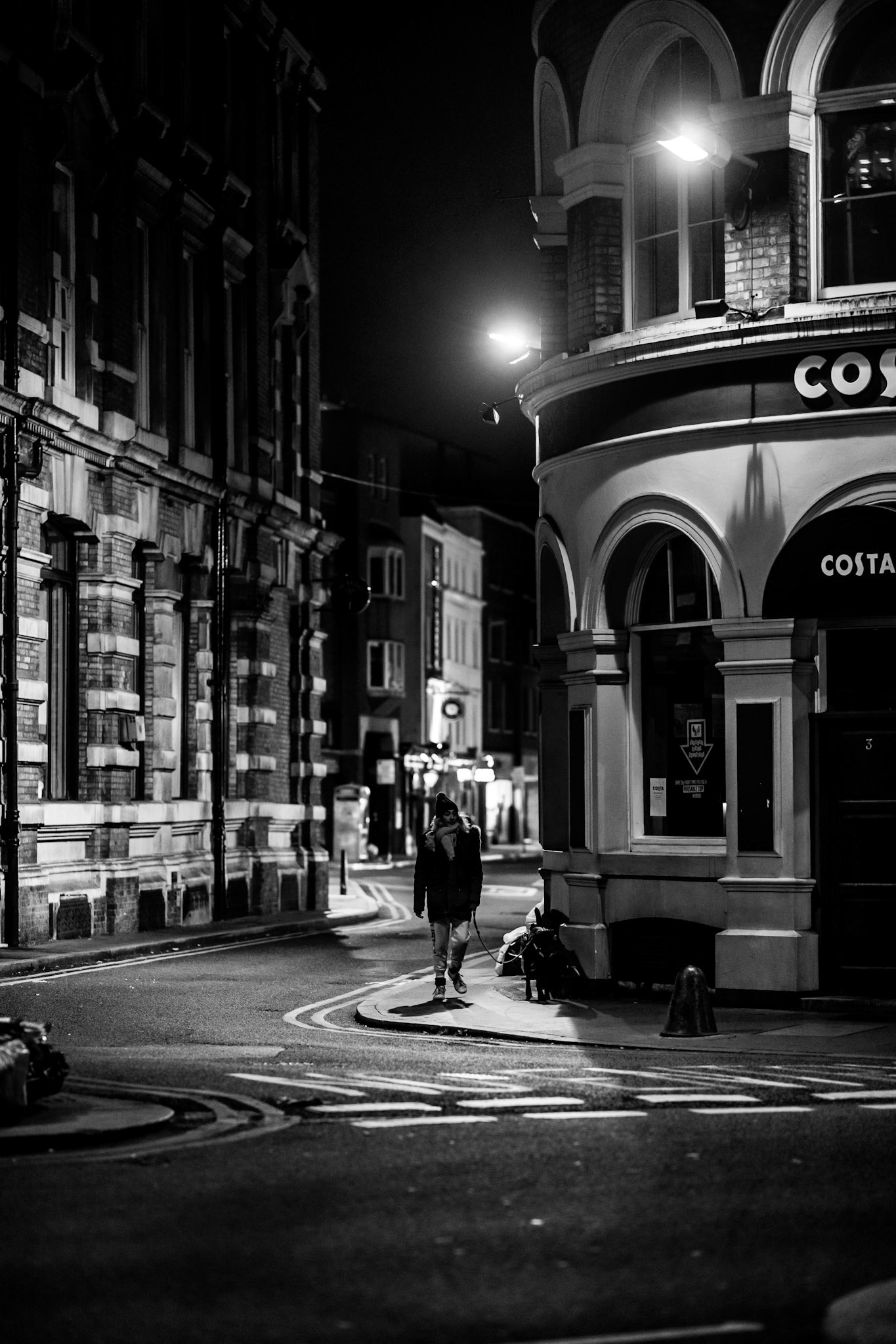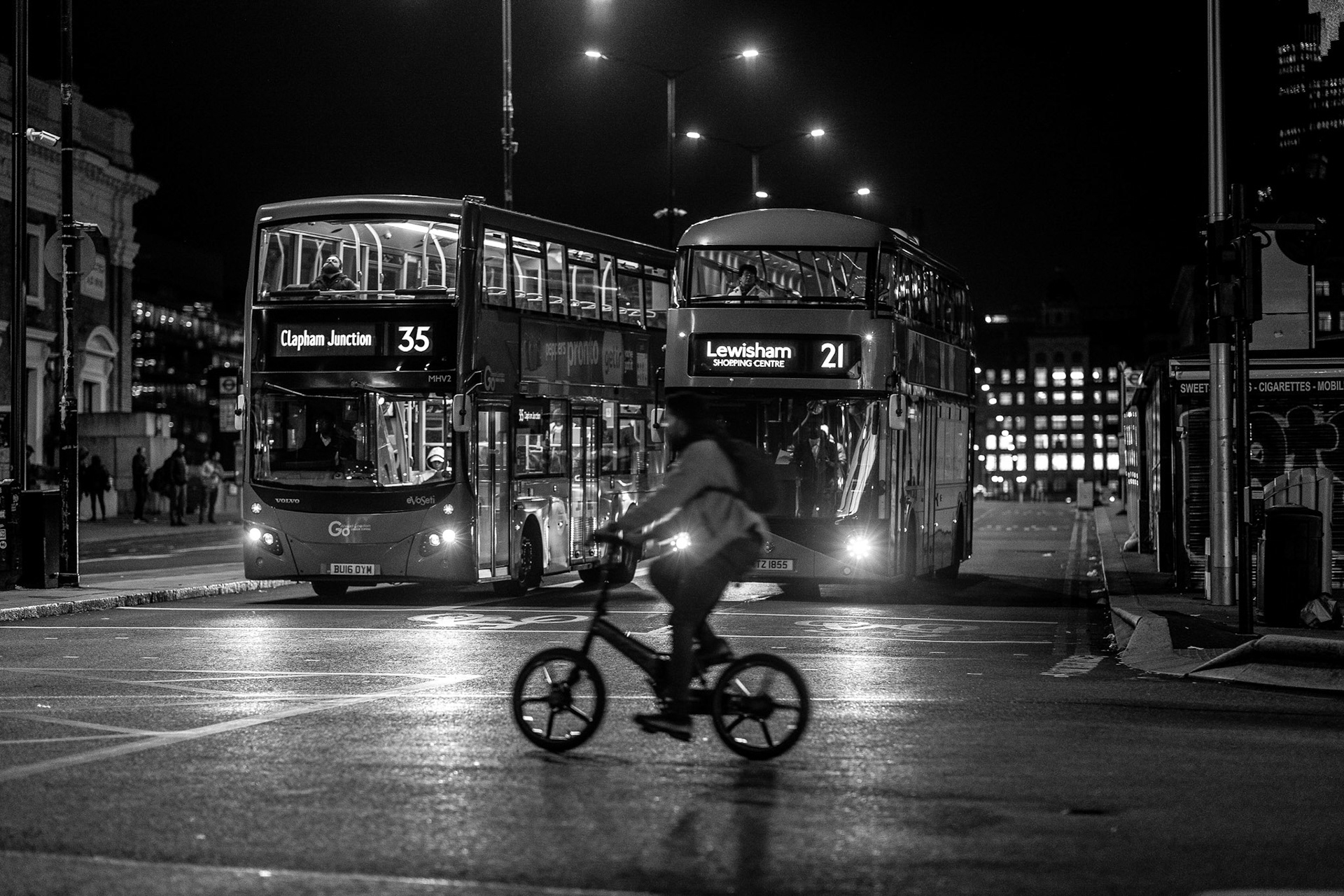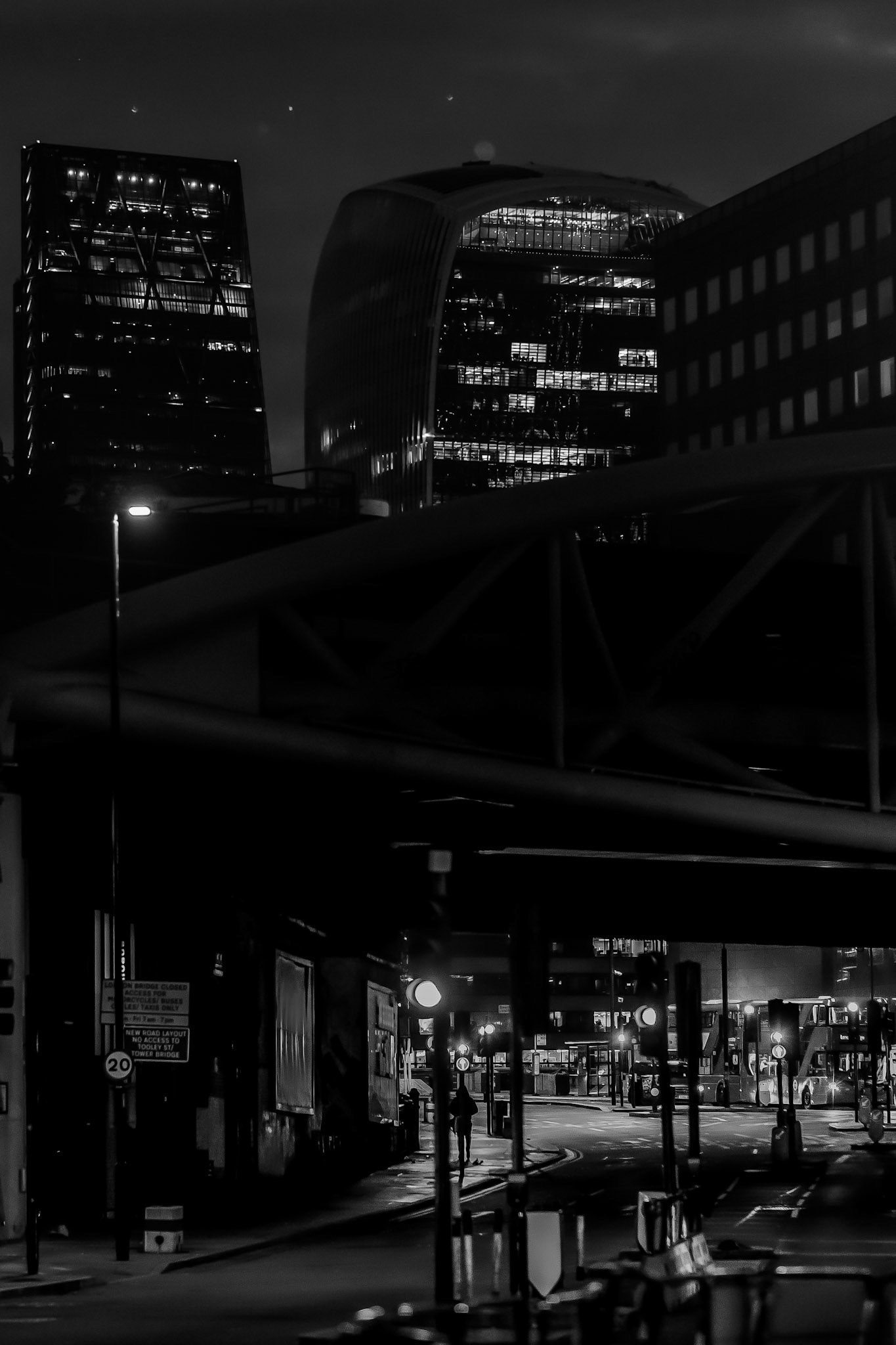 Black and White images of London at Night - the city quiet